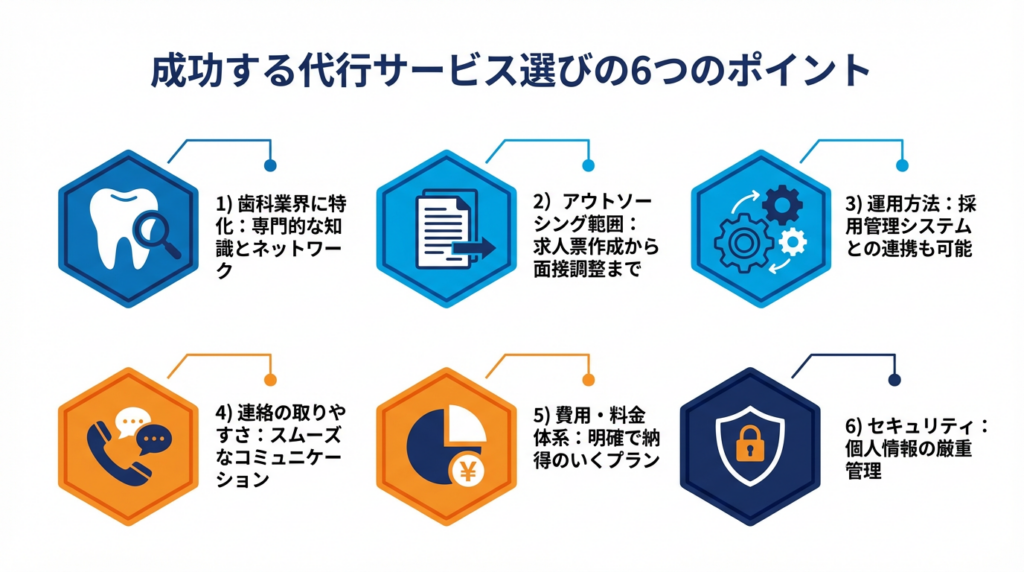成功する代行サービス選びには6つのポイントがあります。1つずつ解説していきますので、ぜひ参考にしてください。